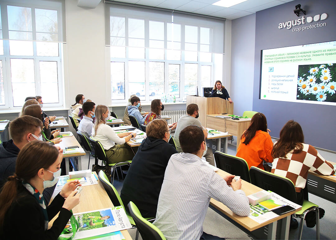 25 февраля в обновленной «Августом» аудитории Тимирязевской академии состоялась Агрономическая универсиада для студентов 3 - 4-го курсов агрономического факультета вуза. Инициаторы ее проведения – кафедра защиты растений и компания «Август». В интерактивном тестировании приняли участие 34 студента.