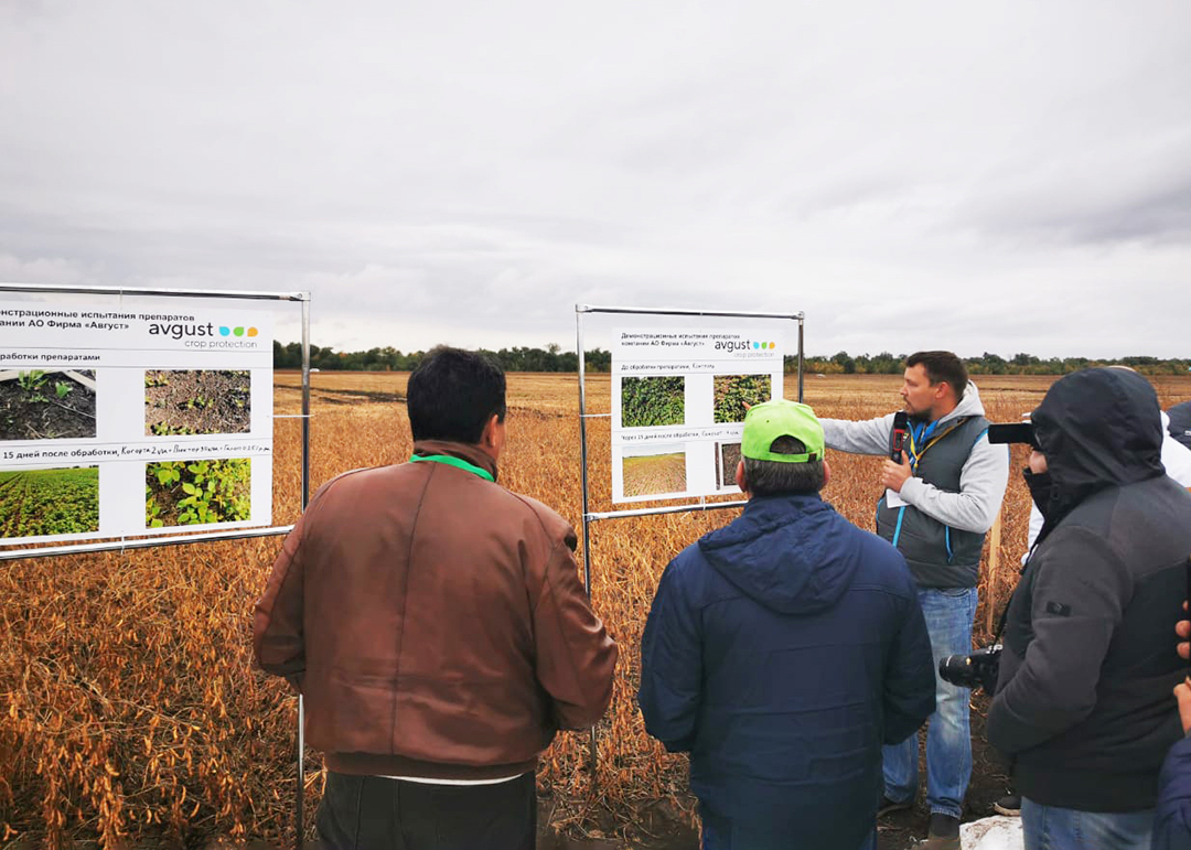 На демплощадках «Августа» участников приветствовал ведущий менеджер фирмы Андрей Шуркин, а специалисты компании Александр Рябцев и Александр Лыгин рассказали о комплексной системе защиты культуры.