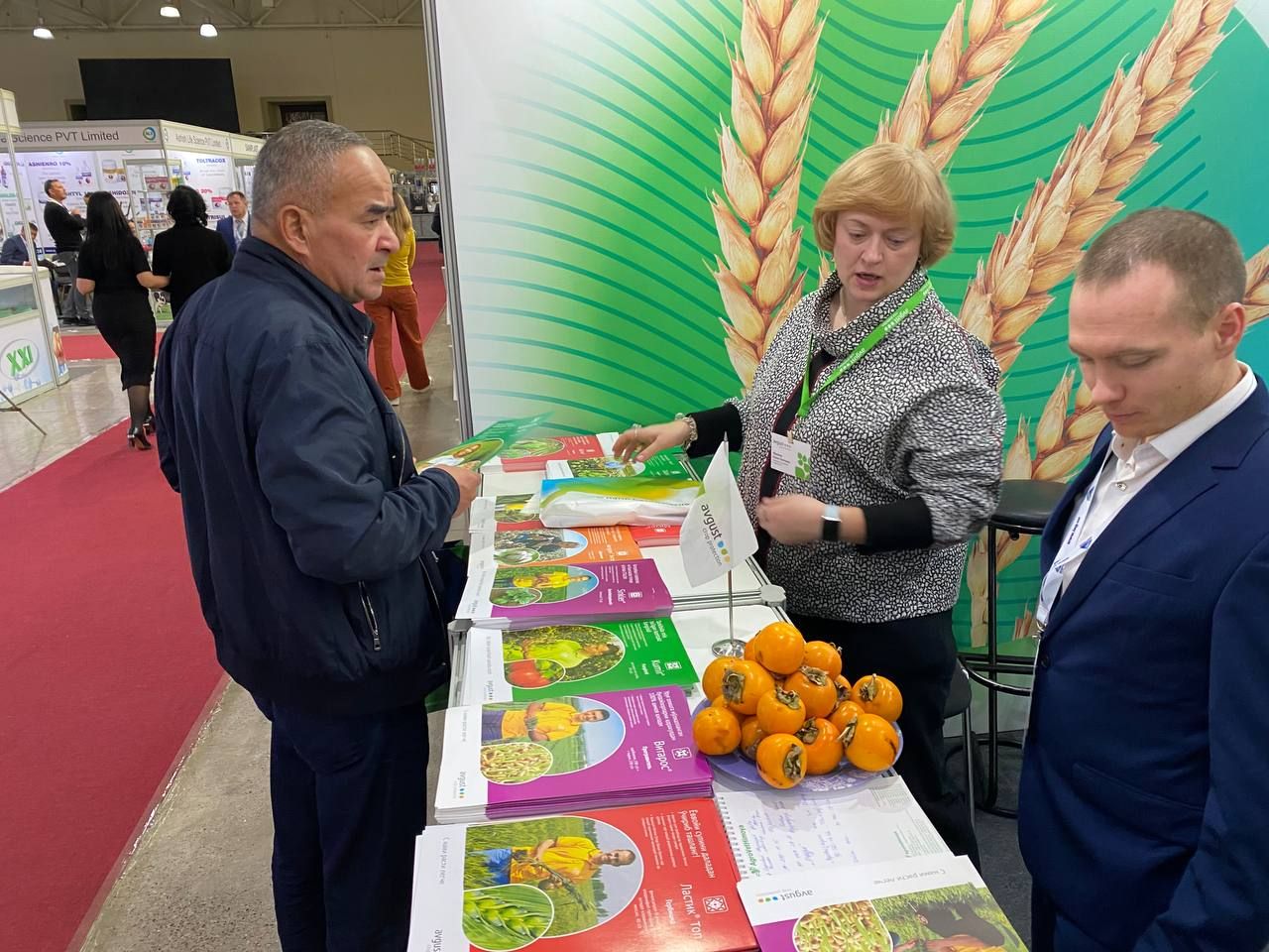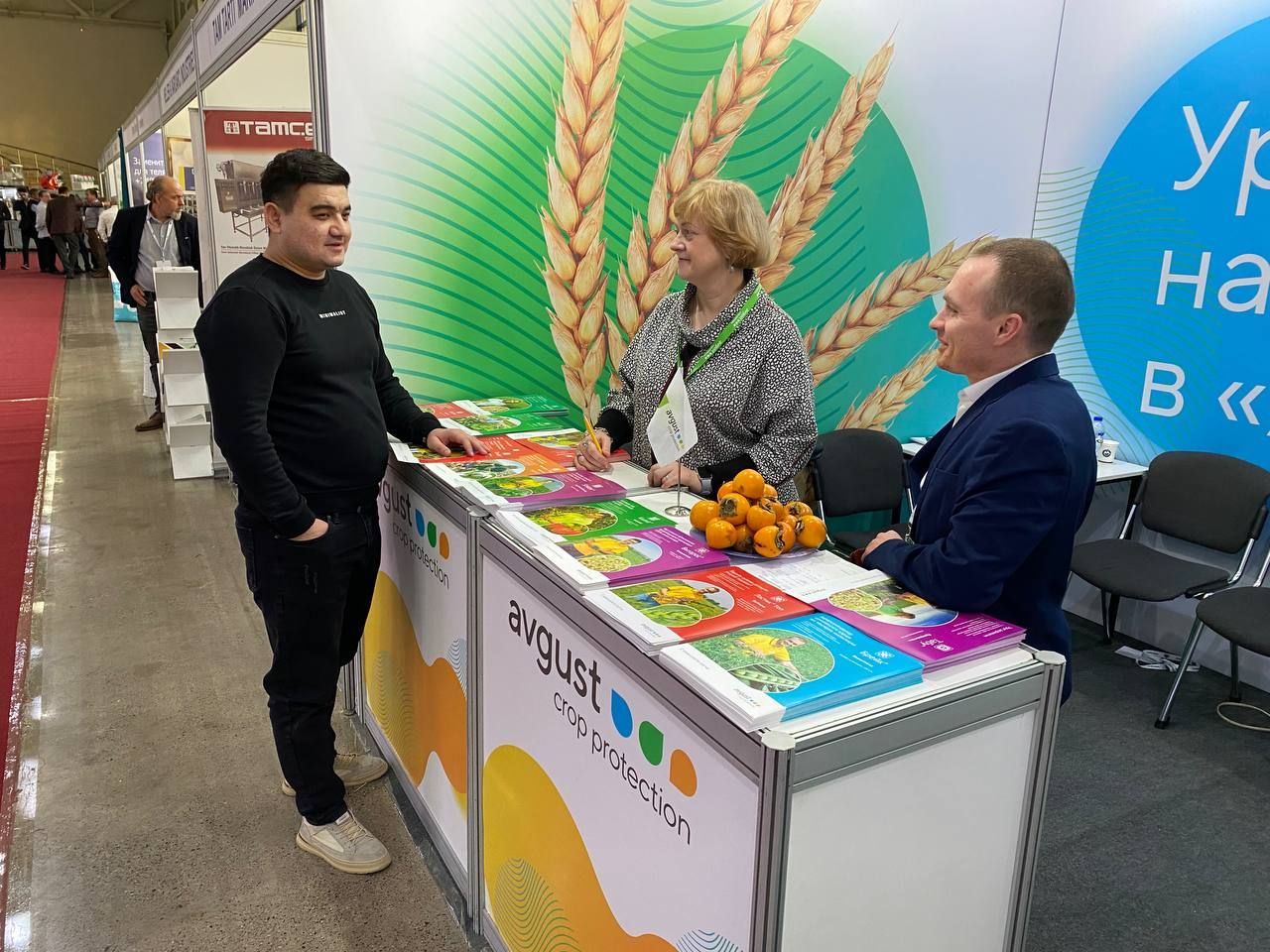 Уже несколько лет «Август» размещает на «UzAgroExpo» свою экспозицию, которую посещают партнеры компании в стране. В этом году гости стенда активно интересуются новинками ассортимента «Августа». В Узбекистане его препаратами защищают зерновые и овощные культуры, а также сады. Одним из самых востребованных здесь продуктов является дефолиант для хлопчатника Авгурон Экстрa.