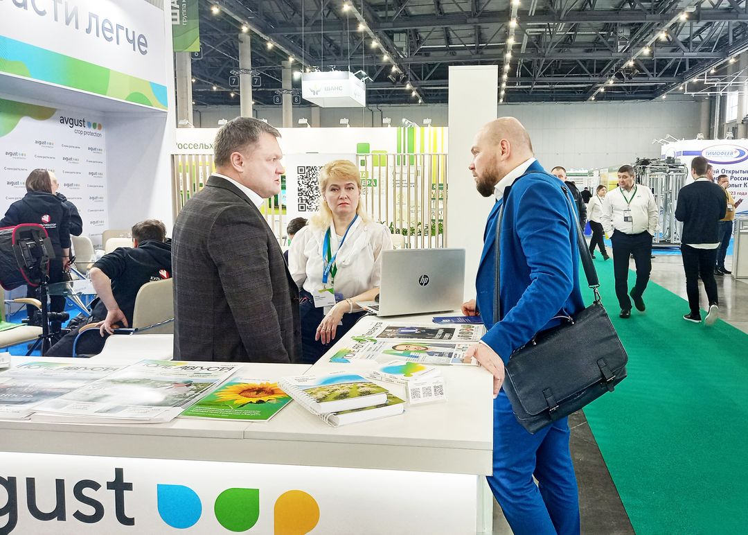 На стенде «Августа» земледельцев консультируют сотрудники казанского представительства компании. Вот, что рассказывает менеджер-технолог Ольга Шибаева: «Мы получаем много вопросов по защите различных культур. Партнеры интересуются протравителями для зерновых Табу Нео и Хет-Трик. Против болезней зерновых в период вегетации мы рекомендуем фунгицид Балий. Особый интерес вызывает новинка – инсектицид Стилет, который эффективен против капустной моли на рапсе. Гости узнают и о новом гербициде для защиты гибридов подсолнечника, устойчивых к имидазолинонам Одиссей, который пришел на смену хорошо знакомой земледельцам смеси Парадокс + Грейдер. Для защиты кукурузы от двудольных и злаковых сорняков мы предлагаем препарат Фултайм».