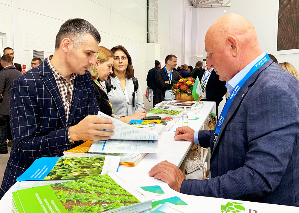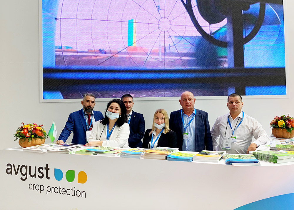 С утра на стенде «Августа» D 301 в павильоне 4 специалисты компании консультируют всех гостей по вопросам защиты растений и технологий применения препаратов. А также рассказывают о новинках ассортимента к сезону-2022.