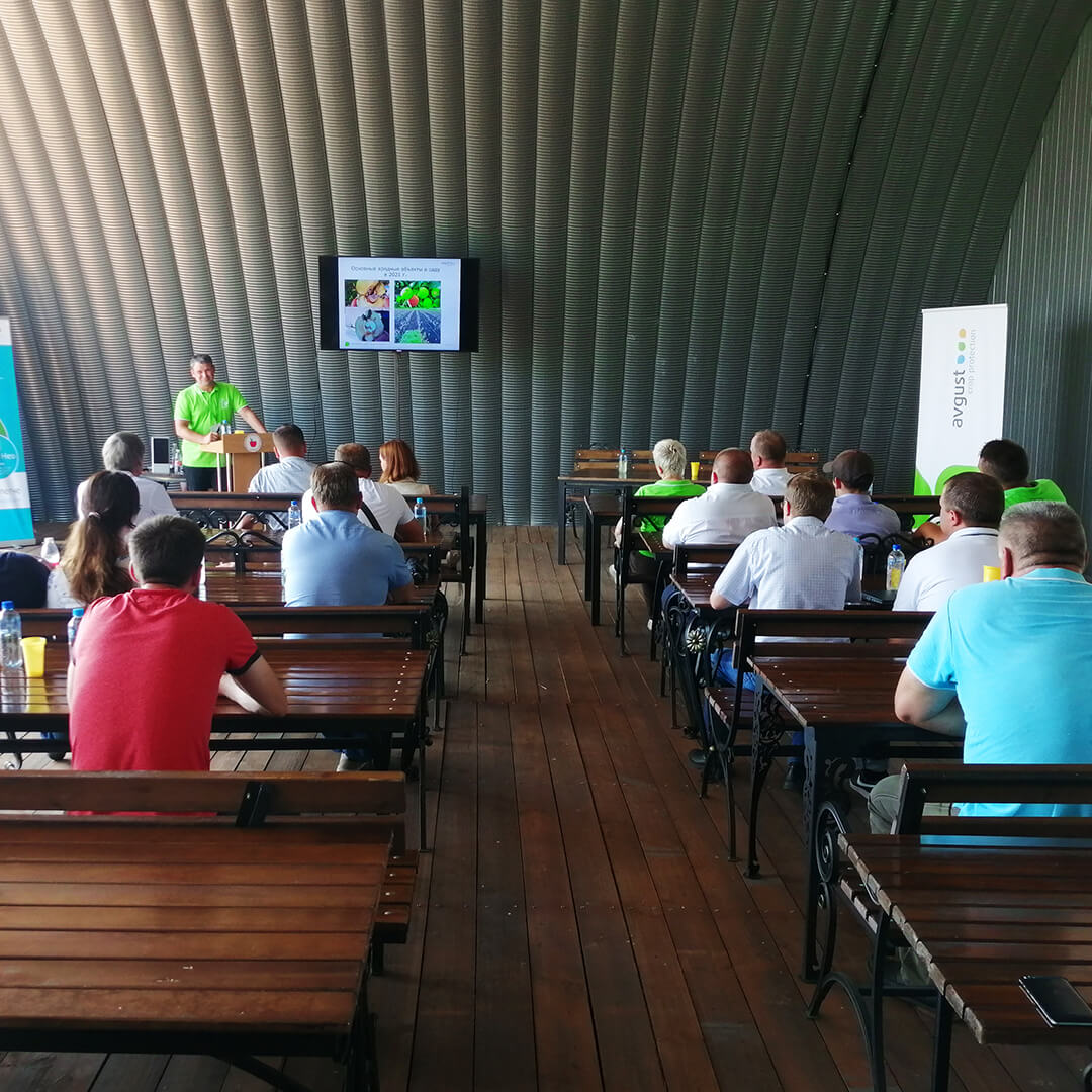 Его гостей приветствовал менеджер «Августа» по ключевым клиентам группы по ЦЧР и Поволжью Виталий Шумилин. Он рассказал о компании и о расширении линейки препаратов для рынка садоводства и плодоводства.