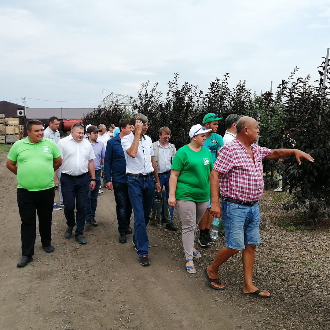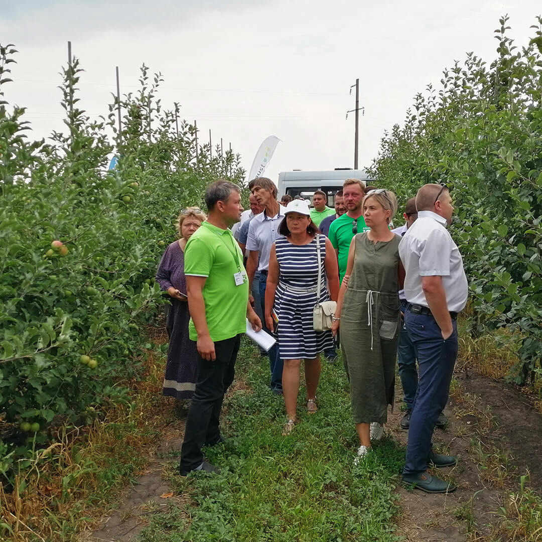 Вместе с директором «Садмашсервис» Игорем Муханиным гости осмотрели демонстрационные участки хозяйства, где они познакомились с передовыми технологиями возделывания плодовых и ягодных культур. И кроме того, воочию убедились в эффективности фунгицидных обработок новинками «Августа» в яблоневых садах.