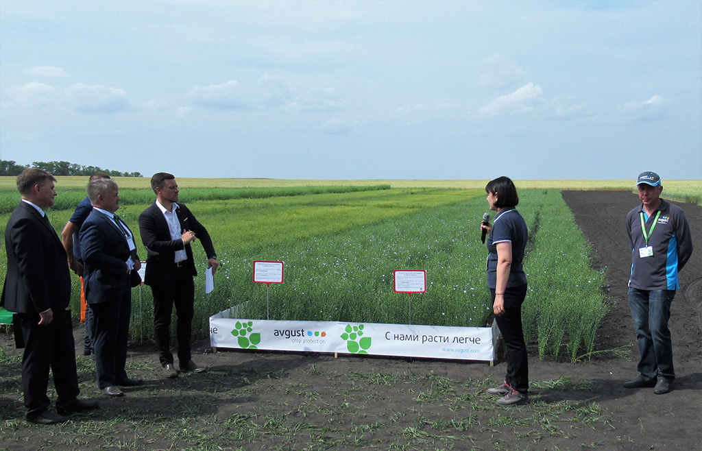 Во время осмотра демонстрационных участков с участием врио губернатора области Вадима Шумкова И. Ильина представила схему защиты льна масличного с применением гербицидов Гербитокс, Магнум и Миура и зерновых культур, которая включала протравитель семян Оплот Трио, гербициды Балерина Супер и Ластик Топ, фунгицид Спирит и инсектицид Борей Нео.