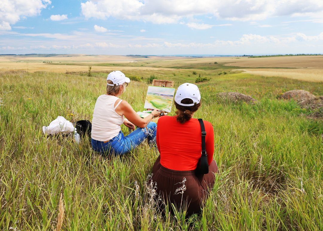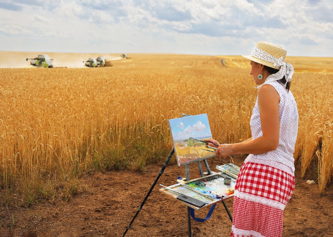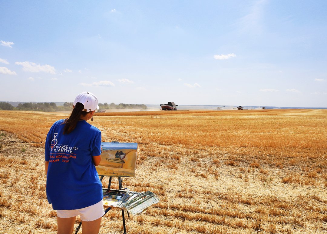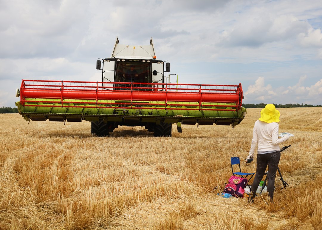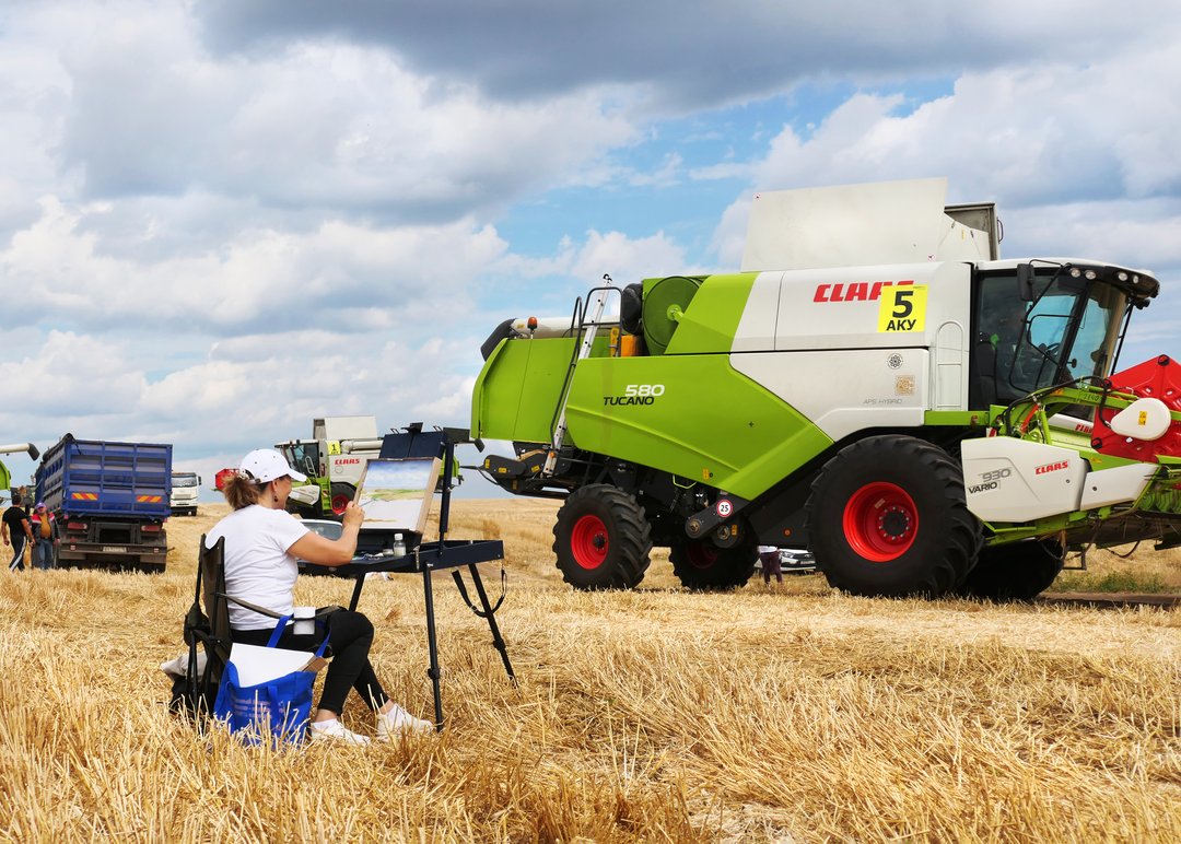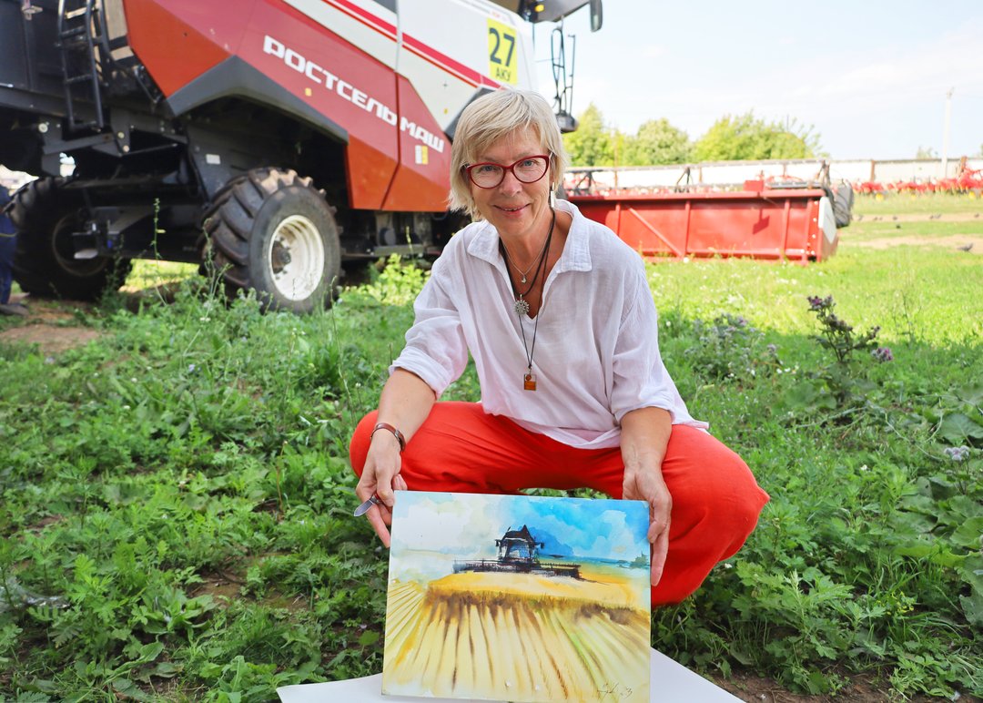 Не меньше волновались и механизаторы, обнаружив, что производственный участок окружили дамы с мольбертами. Переговариваясь по рациям, комбайнеры поправляли друг друга, чтобы «красиво на картине выйти», старались проехаться на разворотах поближе и издавали приветственные гудки.