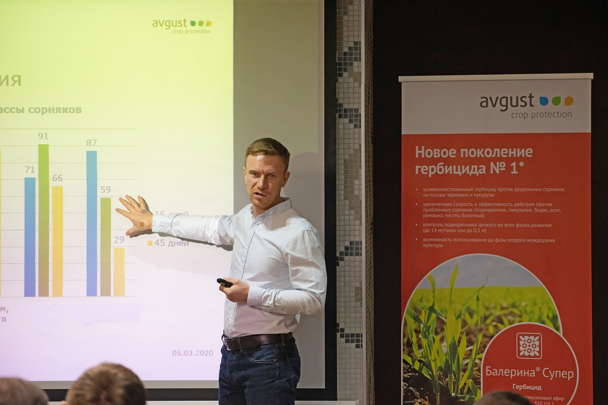 О новинках сезона-2020 рассказал начальник отдела развития продуктов компании «Август» Д. А. Белов. Дмитрий Александрович сделал подробный доклад о различных фунгицидах, однако партнеров «Августа» больше всего заинтересовали новый фунгицид Балий и инсектицидно-фунгицидный протравитель Хет-трик, применение которых ожидают на полях Башкортостана после окончания регистрации.
