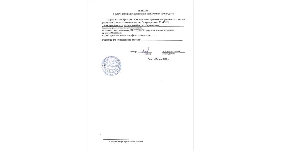 «Август» получил такой сертификат для МатринБио, так как в компанию регулярно поступали запросы от коллег и партнеров – из стран Латинской Америки, СНГ и других, где развито органическое земледелие и растет спрос на биопрепараты.