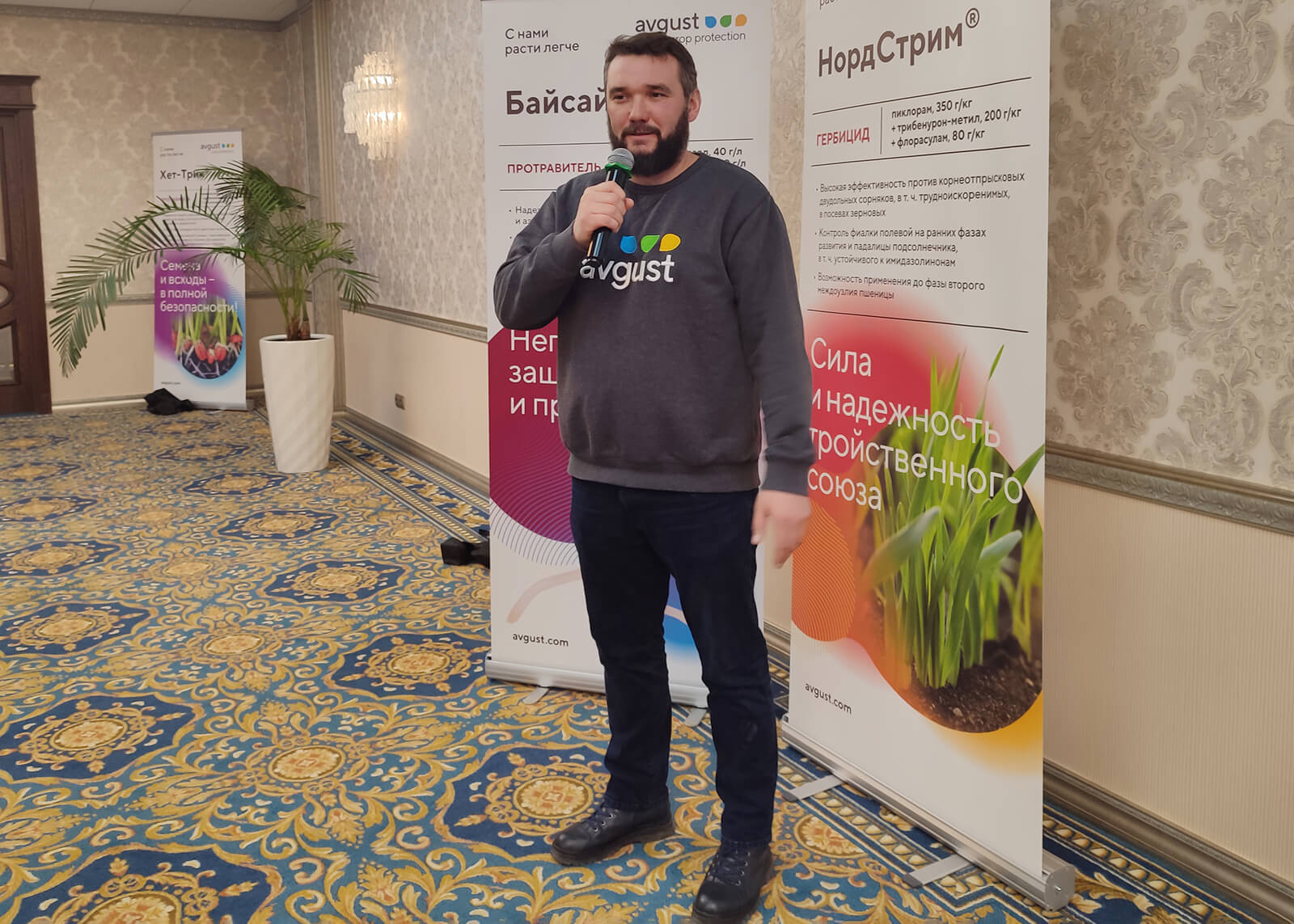 Гостей приветствовал глава представительства фирмы в Челябинске Сергей Иванов. Он подвел итоги прошедшего года и пожелал участникам успехов в работе и богатого урожая. Директор по маркетингу и продажам Дмитрий Плишкин рассказал о производственных площадках и инвестиционных проектах «Августа».