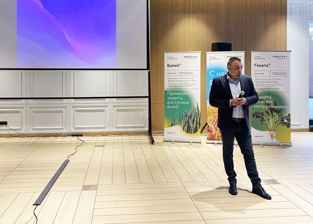 Об итогах работы компании в регионе рассказал менеджер по ключевым клиентам Виталий Шумилин. Начальник отдела развития продуктов Владимир Барков представил новинки «Августа» к сезону-2024. Это протравители семян Байсайд и Себринг, гербициды Стингрей, Форкаст, Кантата; фунгициды Шриланк, Ланцея и Эвклид, инсектицид Дюссак. Регистрация всех препаратов, кроме Байсайда и Шриланка, завершается.