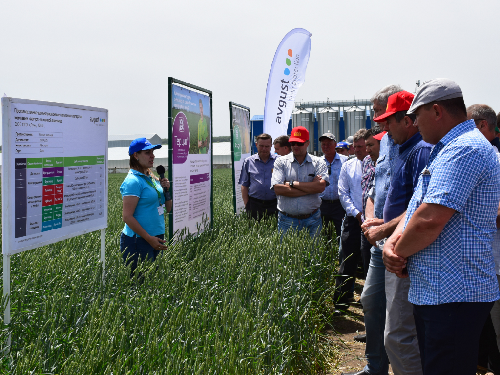 День поля прошел 29 мая на базе известного семеноводческого хозяйства ООО ОПХ «Луч» в селе Падинском – там собрались ученые ведущих селекционных учреждений, которые представили новые сорта зерновых культур для условий Юга России. Руководство хозяйства показало гостям семеноводческий завод, запущенный в прошлом году, а технологи «Августа» продемонстрировали на опытном поле актуальную систему защиты озимой пшеницы препаратами компании.
