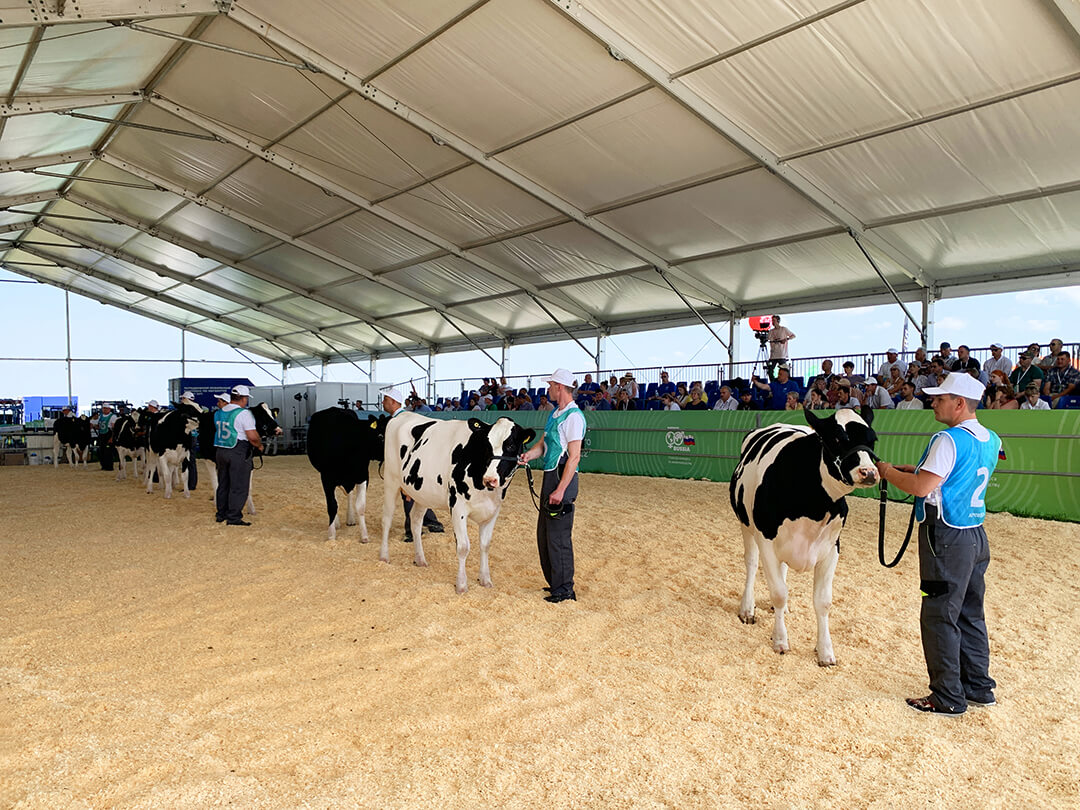 На выставке проходит конкурс по профессиональному мастерству управления трактором и республиканский конкурсный показ животных молочного направления.