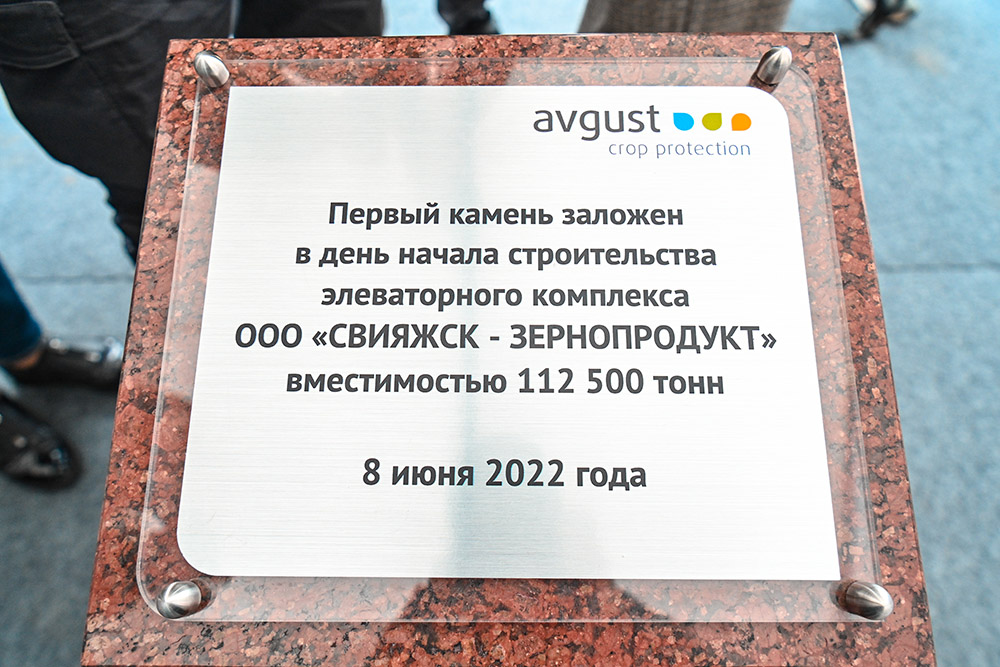 В закладке камня на площадке строительства будущего комплекса приняли участие президент Республики Татарстан Рустам Минниханов, министр сельского хозяйства и продовольствия Республики Татарстан Марат Зяббаров, глава Зеленодольского района Республики Татарстан Михаил Афанасьев, генеральный директор группы компаний «Август» Александр Усков, генеральный директор ООО «Управляющая компания «Август-Агро» Айдар Галяутдинов и генеральный директор ООО «Свияжск-Зернопродукт» Фарид Гирфанов.