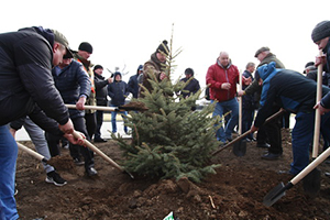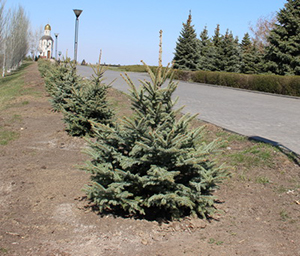 Где взяли саженцы? Нашли подрядчика, который все организовал, приобрел лучшие ели, какие только можно найти на рынке, – в краснодарском питомнике. Они прекрасного качества, хорошо развиты, высокие (около 1,5 м). Договорились с подрядчиками, что они частично посадят ели сами, а часть оставят для нас, чтобы и мы поработали.