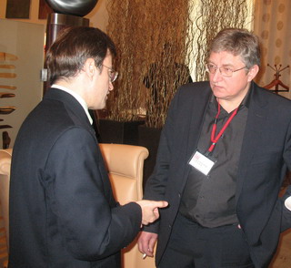 На снимках: обмен мнениями в кулуарах конференции (Дмитрий Рылько и генеральный директор фирмы «Август» Александр Усков).