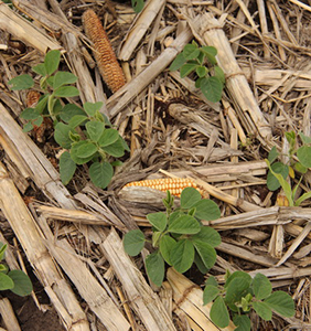 Типичное чередование: зерновые, соя, кукуруза, соя. Убирают сою, потом сразу же заезжают на поле с сеялкой прямого сева и высевают следующую культуру. Либо выдерживают какое-то время, чтобы дать полнее отрасти сорнякам, обрабатывают их глифосатом и сеялкой «врезают» другую культуру. Мы были на поле, где после уборки кукурузы было много полуразложившихся пожнивных остатков, в том числе и обломки початков, и везде были всходы сои. Причем я бы не сказал, что слой мульчи был большим, сплошным, встречались плешинки голой земли. Видимо, все успевает разлагаться потому, что бактерии активно работают. По всходам применяют инсектициды по мере необходимости, а также фунгициды… В «Вулкане» используют систему No-till уже около 15 лет, и это чувствуется. В земле достаточно органики, идешь по ней – и она как бы пружинит под ногами.