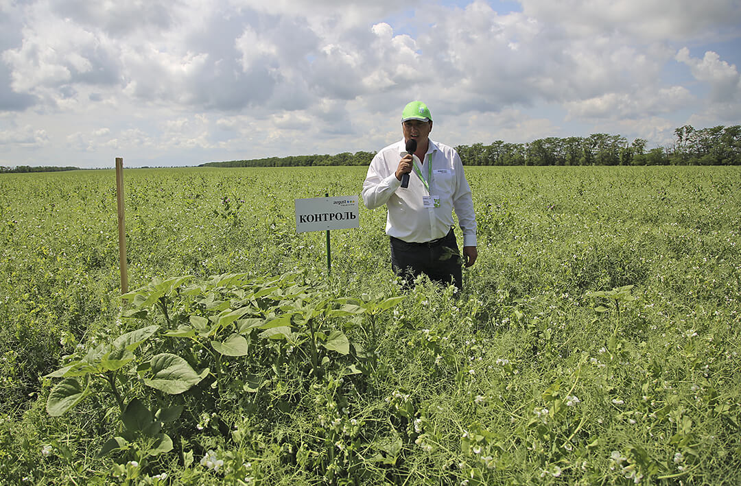 <В приветственном слове заместитель руководителя представительства компании «Август» Ауэс Шебзухов отметил: «В этом году из-за погодных условий не все смогли вовремя провести защитные мероприятия, приходилось менять стратегии защиты на ходу. Сегодня наши специалисты продемонстрируют вам свою работу, а вы уже выбирайте на демпосевах то, что подходит именно вам. Технологи «Августа» всегда будут рады помочь. Препаратов у компании достаточно, на каждую культуру есть выбор схем защиты».