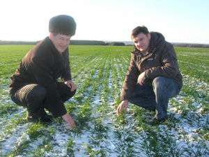 Главный лимитирующий фактор при внесении пестицидов на рапсе – получение дружных всходов. Пока из-за неравномерного распределения измельченной соломы у нас это не получается: там, где ее больше, рапс позже всходит. Планируем приобрести хотя бы одну специальную борону, чтобы растаскивать солому по полю, исключая при этом «полосатости» всходов.