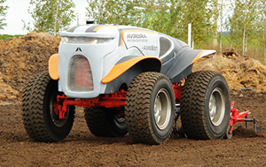 Но если производство этого чудо-трактора с космическими формами еще не налажено, то компания «Аврора Роботикс» представила трактор «Агробот», который уже испытывают с набором прицепных орудий на опытном поле в 50 га с полным циклом выращивания урожая. Как рассказал генеральный директор этой компании В. Ю. Савельев, они разрабатывают системы автоматизации для спецтехники и мобильных объектов. В основе таких систем – программный комплекс, который получает информацию об окружающем пространстве через разнородные сенсоры (лазерное сканирование и данные с видеокамеры) и на ее основе строит карту местности и управляет движением агрегатов.