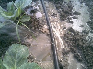 В-третьих, толстостенная трубка может эксплуатироваться при более высоком давлении, что позволяет увеличить длину гонов, сократить расходы на разводящие трубопроводы, увеличить размер поливной клетки. И, наконец, это просто дешевле! Метр трубки шестилетнего использования стоит около 1 гривны (10 гр. = 37,19 руб. на 12.02.2013 – прим. ред.), а метр однолетней тонкостенной – 0,42 гривны. Цена отличается в два с небольшим раза, а срок использования – в шесть раз!