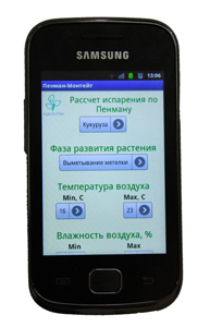 Фото. Программа расчета суммарного испарения в мобильном телефоне