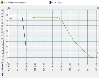 Рис. 4. График быстрого падения влажности воздуха после полива дождеванием