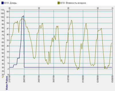 Рис. 5. График влажности воздуха при капельном поливе