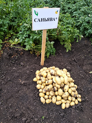 Сорт Саньява, также созданный учеными компании «Bavaria-Saat», обладает отличной устойчивостью к болезням, хорошей лежкостью. Благодаря равномерной калибровке и большому выходу товарных клубней идеально подходит для мойки, расфасовки, длительного хранения. Картофель обладает отличной пищевой ценностью. Для него характерны низкая склонность к потемнению мякоти (желтого цвета) в сыром виде и после приготовления, очень низкая склонность клубней к внутренним дефектам и механическим повреждениям.