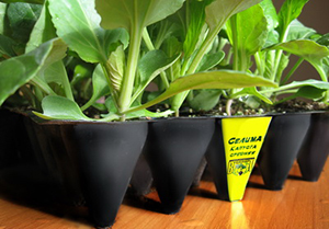 Старение рассады – это проблема, связанная с неправильным расчетом сроков посева семян (когда рассада уже давно готова, а погодные условия не позволяют произвести высадку), а также с неправильным подбором размера ячейки кассет. Есть строгая корреляция – чем больший возраст рассады мы хотим получить, тем больший объем ячейки необходимо выбрать для выращивания. Передержанная, застаревшая рассада выглядит очень жесткой (как проволока на ощупь), листовые пластинки загрубевшие, но главный признак – корневая система в ячейке множеством колец обвивает торфяной кубик, корни при этом тоньше и темнее обычного.