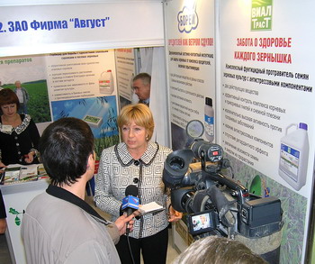 Значительный интерес у посетителей вызвала экспозиция фирмы «Август», где были представлены не только хорошо знакомые земледельцам препараты, но и новинки, впервые испытанные на полях области в сезоне-2009. Сотрудники Воронежского представительства «Августа» заблаговременно разослали своим клиентам персональные приглашения посетить выставку и экспозицию фирмы. Поэтому на стенде «Августа» состоялись многочисленные встречи и беседы партнеров, обсуждение итогов года и предварительных планов работы на земле в новом сезоне, а также… некоторых публикаций газеты «Поле Августа». В частности, о влагосберегающих минимальных технологиях обработки почвы, а также No-till (нулевая обработка), которые в завершающемся засушливом сезоне очень помогли многим хозяйствам. Все клиенты фирмы получили в подарок новый промо-диск «Августа» – своеобразный мини-сайт, не требующий подключения к Интернету и содержащий огромное количество полезной информации.