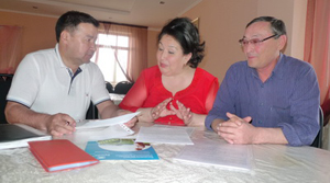 Обсуждение планов на будущее: Н. А. Канитаев, С.Б. Казыбаеваи М. О. Казыбаев