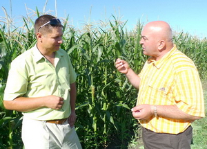 Мы посеяли раннеспелый гибрид НК Равелло компании «Сингента» и два краснодарских, которые взяли для пробы, но они – не то, к сожалению. Растения Равелло стоят как солдатики, а початки какие! Мы кукурузу на новых землях посеяли, и на участках раннего сева столкнулись с такой проблемой, что я думал, не справимся – осот сразу же пошел. Позвонили в Павловское представительство «Августа» С. Н. Хворостяному (глава представительства компании в г. Павловске Воронежской области – прим. ред.), совместно продумывали, что делать. И нашли выход – к Дублону Голд добавили Приму, и эта смесь все сорняки убрала. А сколько дурнишника было! То есть, в этом году мы работали как чистым Дублоном Голд, так и в смеси с Примой. И в одном, и другом случае в рабочий раствор добавляли Адью.