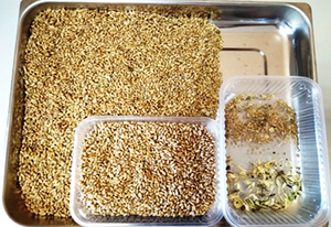 Чтобы избавиться от крупного сора, предварительно используем комплект сит с разным диаметром ячеек, а затем уже начинаем разбирать остальное вручную на столе. При определении засоренности навеску зерна разбираем на две фракции: основную культуру и отход. Анализ начинаем с выделения отхода семян (комочки земли, части стеблей, стержней, ости, пленки, семена дикорастущих растений, испорченные и фузариозные зерна, вредная примесь, неполноценные зерна основной культуры – битые, изъеденные, давленые, щуплые, недозрелые, проросшие и иные). Разобрав семена и примеси, определяем чистоту семян в процентном соотношении.