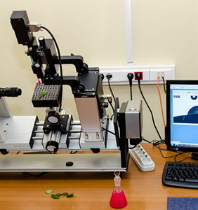 Сами же научные площадки разделились по функциональным возможностям. В исследовательской лаборатории мы можем не только разрабатывать новые формуляции, но и, благодаря большому количеству нового оборудования, изучать особенности поведения капель препаратов и адъювантов на поверхности листа; исследовать влияние различных компонентов рецептуры на процессы формирования капель и смачивания ими листовых пластинок; изучать процессы поглощения и транслокации действующих веществ через кутикулу.