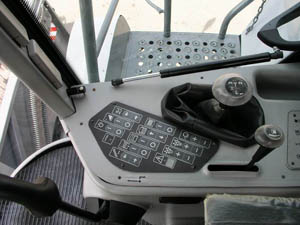 На снимках: «Вектор» в работе; органы управления под правой рукой комбайнера.
