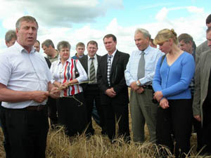 Здесь День поля третий год подряд провели в КГУСП «Заря». Чем «Заря» заслужила такое внимание? И директор хозяйства Л. А. Петухов, и специалисты серьезно относятся к применению ХСЗР, скрупулезно испытывают различные схемы их использования, не стесняются затем рассказать коллегам как о положительных результатах, так и о промахах. Поэтому Дни поля здесь всегда проходят живо, интересно, полезно.
