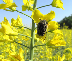 Не заставили себя ждать и сорняки. Общая засоренность составила 56 шт/м², в том числе: щирица – 30, марь белая – 13, крестоцветные – 2, щетинники – 8, горец шероховатый – 2, овсюг – 1 шт/м². Также на поле отбыли отмечены единичные растения осота розового, вьюнка полевого. Требовалось срочно обрабатывать посев, что и было сделано 24 мая гербицидом Фабиан, 0,1 кг/га в смеси с адъювантом Адью, 0,2 л/га. Расход рабочего раствора 300 л/га. В связи с высокими дневными температурами обработку проводили в вечернее и ночное время. Сработал гербицид хорошо, от большинства сорняков уже через 10 - 11 дней не осталось и следа.