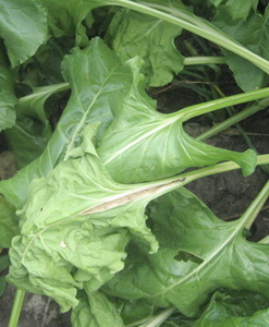 Так выглядело опытное поле 4 июля; А так в соседнем хозяйстве «осветляли» посевы свеклы, скашивая сорняки; Растрескивание черешков – первый признак нехватки бора