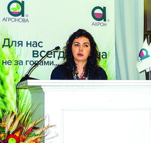 Группу «Акрон» представила директор по маркетингу и развитию бренда А. С. Степанова: «Компания «Акрон» – ведущий производитель сложных и азотных удобрений, она входит в топ-10 мировых лидеров по выпуску NPK. В 2016 году объем продукции составил 6,5 млн т. Наличие собственной сырьевой базы позволяет полностью обеспечивать потребности земледельцев России в удобрениях. Кроме того, продажи осуществляются в 60 странах мира.