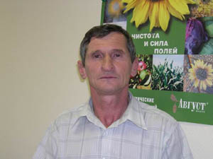 бурей. Пересеяли мы только 300 га, остальные площади заняли другими культурами. После той бури установилась небывалая сушь. Тогда пропало много всходов гороха, овса, ячменя… В целом убытки составили более 16 млн руб. Но мы все-таки собрали 35 тыс. т зерна, 15 тыс. т сахарной свеклы (с 300 пересеянных гектаров), в достатке заготовили кормов и т.д. Сумма реализованной сельхозпродукции составила 214 млн руб., это не намного ниже среднегодового показателя последних лет. Урожайность озимых на оставшихся площадях составила 45 ц/га. Яровые зерновые были сильно повреждены, и здесь снижение урожайности было сильным. Собрали зерна всего по 8 - 12 ц/га. Кукурузы на орошении намолотили по 53 ц/га. Как всегда, мы вырастили хороший урожай сахарной свеклы, даже на пересеянных площадях – по 500 ц/га. Как и все последние годы, применили полную схему защиты препаратами фирмы «Август». Использовали хорошо знакомые, проверенные препараты: гербициды бетарен экспресс АМ, центурион, лонтрел-300, на небольших площадях против канатника Теофраста пришлось добавлять карибу, против болезней на свекле применяли тилт.