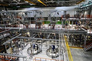 Участок гербицидов и участок фунгицидов отделены друг от друга стеной, материальные потоки нигде не пересекаются. Такая организация процесса предотвращает загрязнение продукта. Здесь установлены накопительные емкости для крупнотоннажных препаратов до 50 тыс. л и реакторы до 25 тыс. л. На новом производстве «Август-Алабуга» загрузка твердого сырья из «биг-бэгов» стала полностью герметичной, искусственный интеллект обеспечивает максимальную точность дозирования. С помощью АСУ ТП установлен полный контроль за движением сырья, полупродукта и готового продукта на всех этапах производства.