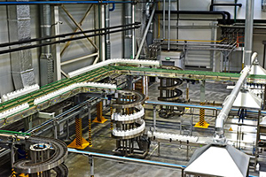 В цехе по производству полимерной тары только на снижении логистических операций производительность труда по сравнению со стандартными технологическими схемами повышается в четыре раза. Здесь четыре коэкструзионно-выдувные машины способны за сутки выпускать около 53 тыс. многослойных полимерных канистр. Каждую из машин обслуживает один оператор. Готовые канистры по конвейерам транспортируются на автоматический склад готовой продукции, рассчитанный на хранение 180 тыс. канистр. Складирование и выдача готовой продукции проходит с помощью автоматизированных средств перемещения по четырем плоскостям склада и трех картезианских роботов. Склад обслуживает один оператор.