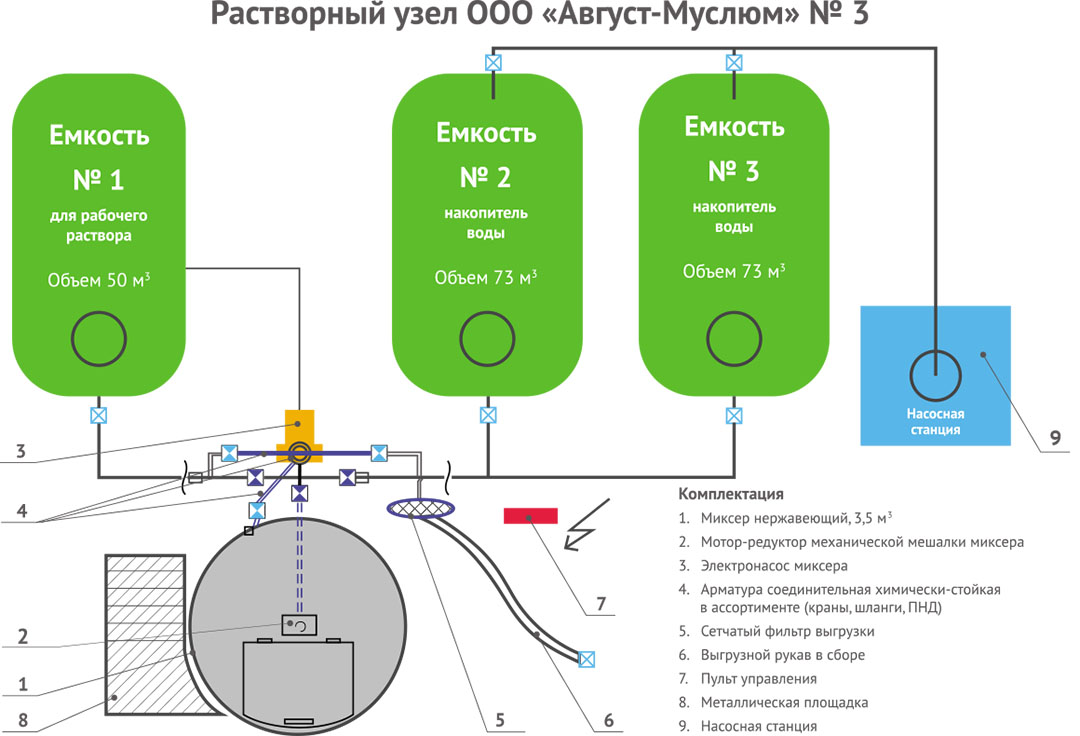 Итак, что же входит в комплектацию действующих сейчас стационарных растворных узлов?