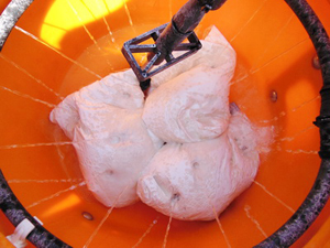 Начало растворения пакетов в предбаке опрыскивателя