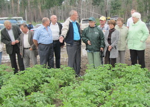 В «Белореченском» участники Дня поля также познакомились с системами защиты лука-репки и картофеля. На картофеле (сорт Скарлет) сорняки сняли гербицидом лазурит, и против болезней провели четыре отработки фунгицидами метаксил и ордан при их чередовании. «Белореченское» – единственное хозяйство в области, где «осиливают» четыре фунгицидных обработки, в отличие от других, даже специализирующихся на картофеле хозяйств, где выполняют максимум две - три. И это сказывается на урожайности – в «Белореченском» она в последние годы достигала на круг 300 ц/га, на отдельных полях – 500 ц/га.
