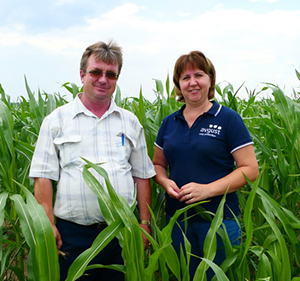 А. В. Шиков и Л. В. Якимова на поле кукурузы