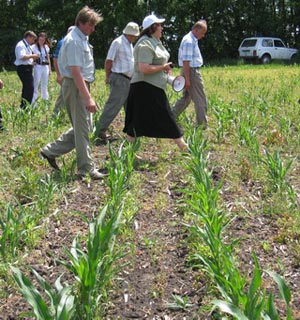 Для испытания нового «августовского» двухкомпонентного гербицида для защиты посевов кукурузы дублона голд в «Калитве» выбрали самое засоренное поле с полным набором сорняков. И все участники семинара, осмотрев посевы, убедились: дублон голд сработал на «отлично». Они придирчиво рассматривали все варианты, сравнивали степень подавления различных групп сорняков… Мнение участников семинара было единодушным: теперь кукурузоводы получили высокоэффективный препарат для защиты своей культуры.