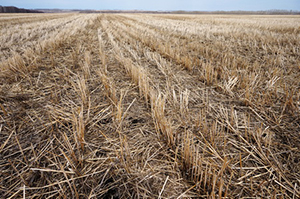Поле с мульчей после озимой ржи перед посевом яровой пшеницы в ГУСП «Рощинский» (апрель 2018 года)