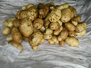 Опыт в АФ «Санары». Поврежденные клубни нового урожая в контроле без обработки