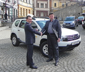 Главный приз победителю вручает глава ТОО «Август-Украина» М. Ф. Халиуллин (слева)