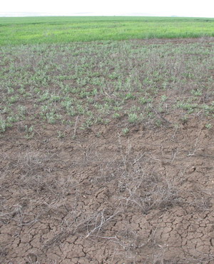 опытный участок в СПК «Перелазовский» Клетского района Волгоградской области на второй год после применения горгона (на переднем плане – так сработал горгон с нормой расхода 3,5 л/га, на заднем плане – контроль без обработки).
